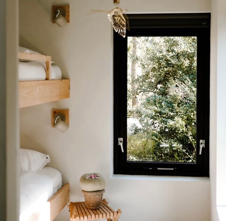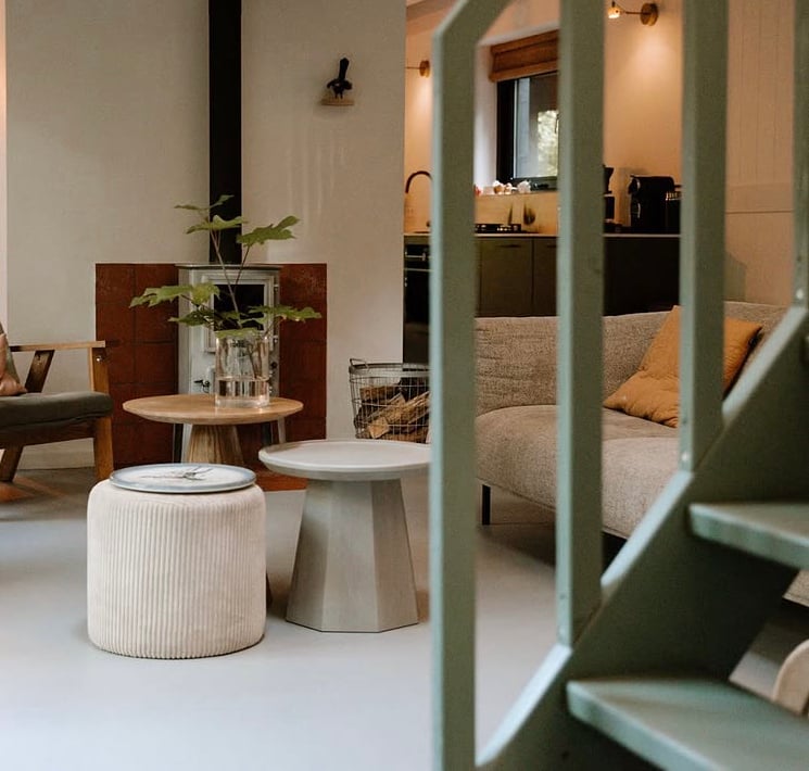 De zon schijnt al door het gordijn, maar je besluit nog even lekker in bed te blijven en pakt je boek. Na een uurtje kom je uit je bed en staat er een heerlijk ontbijt voor je klaar met vers fruit en zelfgebakken zuurdesembrood. Je loopt met je kopje thee naar buiten en snuift de frisse boslucht op.